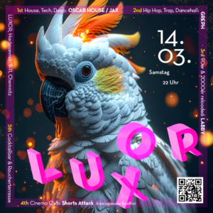 Lass‘ uns wieder für einen Moment zusammen sein, die Nacht genießen, von den Ausflügen in verschneite Berge erzählen, zusammen tanzen und bei leckeren Drinks gute Freunde treffen. Auf 5 verschiedenen Areas feiern wir mit den besten Gästen der Stadt eine ausgelassene Nacht im Luxor. xo\ lx