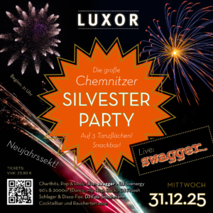 So, wie es sein soll, kommt bei uns das Beste zum Schluss. Die letzten Stunden des Jahres feiern wir gemeinsam mit allen Freunden im Luxor. Und weil uns das noch nicht genug ist, starten wir das neue Jahr mit den besten Vorsätzen, den besten Drinks und natürlich mit den besten Sounds. Keine Zauberer, keine Buffets, dafür drei Tanzflächen und Bühnen, leckere Drinks an allen Bars, einen Neujahrssekt aufs Haus und ausgelassene Stimmung pur ab 21 Uhr.. Prosit!